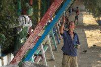 Специалисты Службы городского хозяйства обновляют металлические конструкции под теневыми навесами. Опоры частично зачистили от старой краски и ржавчины, покрыли новой эмалью. Работы займут несколько дней, в планах покрасить и сами скамейки.