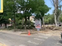 В Керчи ведется активная работа по спилу веток больших деревьев