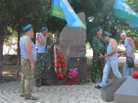 Затем возложение цветов состоялось у памятного знак в сквере афганцев, среди которых было много десантников.