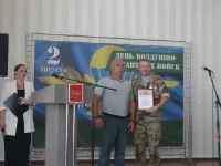 Чуть позже в Культурном Центре им. Богатикова прошло торжественное собрание, посвященное Дню Воздушно-десантных войск. От имени главы администрации Олега Каторгина его заместитель Олег Шевченко поприветствовал собравшихся ветеранов и участников боевых действий и вручил заслуженные награды.