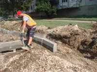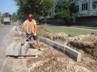 Вдоль автомагистрали по Кирова продолжаются работы по установке бордюров.