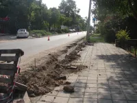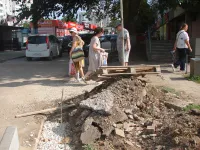 Дело в том, что при укладке бордюрного камня на съезде с Кирова на дорогу- дублер были выкопаны траншеи, и через них положены деревянные настилы для прохода.