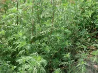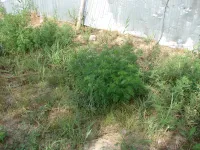 Вдоль тропинок и тротуара к их дому от остановки "23 школа" растет амброзия.