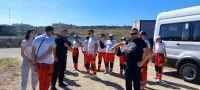 Со стороны Керчи на автоподходах к Крымскому мосту волонтёры Российского Красного Креста установили три палатки.