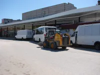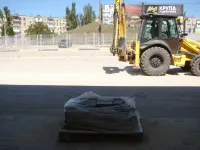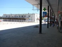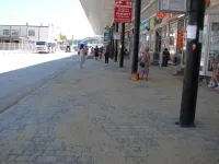 На пассажирской платформе общественного транспорта у автовокзала тротуарная плитка обновлена более чем на 2/3.
