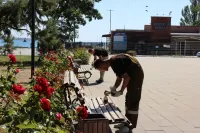 В сквере у морского вокзала сотрудники Службы городского хозяйства приводят в порядок скамейки. Об этом сообщает пресс-служба администрации, - передает КерчьФМ