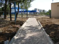 На объекте начали укладывать тротуарную плитку двух цветов: серого и красного. От школы и вдоль стадиона уложили около 50 метров, передает КерчьФМ.