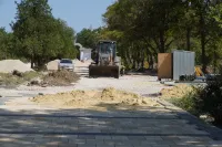Готово основание под воркаут-площадку. Следующий этап - укладка безопасного резинового покрытия и установка спортивного инвентаря. Идёт подготовка к монтажу первых малых архитектурных форм у центральной аллеи.