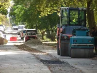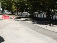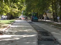 Работы по восстановлению асфальтового покрытия после укладки нового водовода продолжаются в районе остановки "Промбаза".