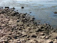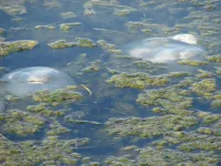 Причина в водорослях у берега и больших островков тины на поверхности водной глади в десятке метров от него.