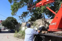 По обращению местных жителей специалисты обрезают ветки платанов над домом, чтобы они не забивались в стоки и не били по крыше.