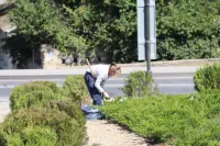 Сегодня работы по прополке, удалению сорной растительности и рыхлению почвы велись на кольце по улице Чкалова, вчера аналогичные работы были проведены на кольце автовокзала.