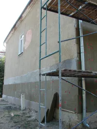 Потом стены покроют специальной штукатуркой, которая защитит их от внешних повреждений, влаги и укрепит поверхность.