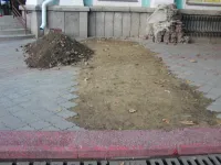 Разрытия выполнялись очень аккуратно. Цветочные вазоны сохранены.