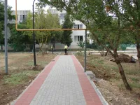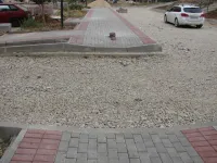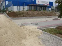 Небольшой отрезок для соединения с уже выложенной плиткой остался у самой школы.