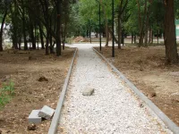 Что касается середины аллеи и ее начальной части вместе с небольшим сквером, то там все по-прежнему: бордюры, щебень.