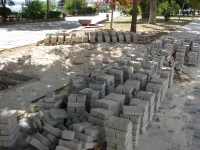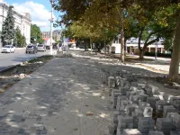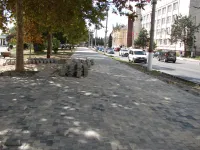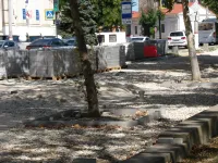 Начиная от остановки "Музей" и немного не доходя до участка напротив пешеходного перехода у здания ЮГНИРО, новая тротуарная плитка уже уложена.