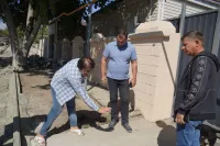 В частном секторе вдоль улицы Северной подрядная организация приступила к устройству тротуара и установке бордюрного камня.