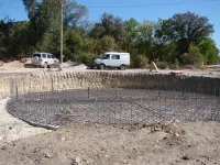 В зоне особого внимания и чаша будущего фонтана. Армированный каркас под будущую железобетонную конструкцию практически готов.