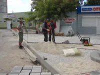 На очереди- укладка нового тротуара вдоль бывшей швейной фабрики по улице Еременко.