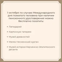В начале октября Восточно-Крымский историко-культурный музей-заповедник организует бесплатные посещения некоторых объектов для отдельных категорий керчан. Об этом сообщает пресс-служба администрации, - передает КерчьФМ
