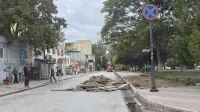 Утром уже перекрыли часть переулка и начали демонтировать бетонные плиты на тротуаре.