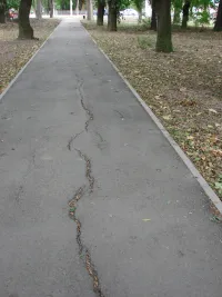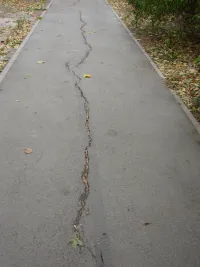 Первые трещины на асфальтовом покрытии появились уже через пару месяцев.