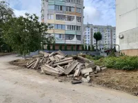 Подрядная организация «Архонт» практически демонтировала все старые бордюры вдоль внутриквартальных дорог и тротуаров. Следующим этапом станет подготовка к установке бортового камня и разметка территории.