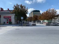 Для обновления всех пешеходных зон используется плитка серого оттенка с вкраплениями, идентичная той, что уложена на автовокзале.