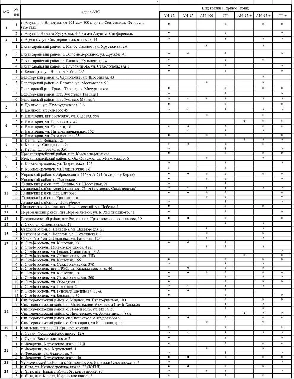 Перечень адресов АЗС, где имеется топливо  в свободной продаже.