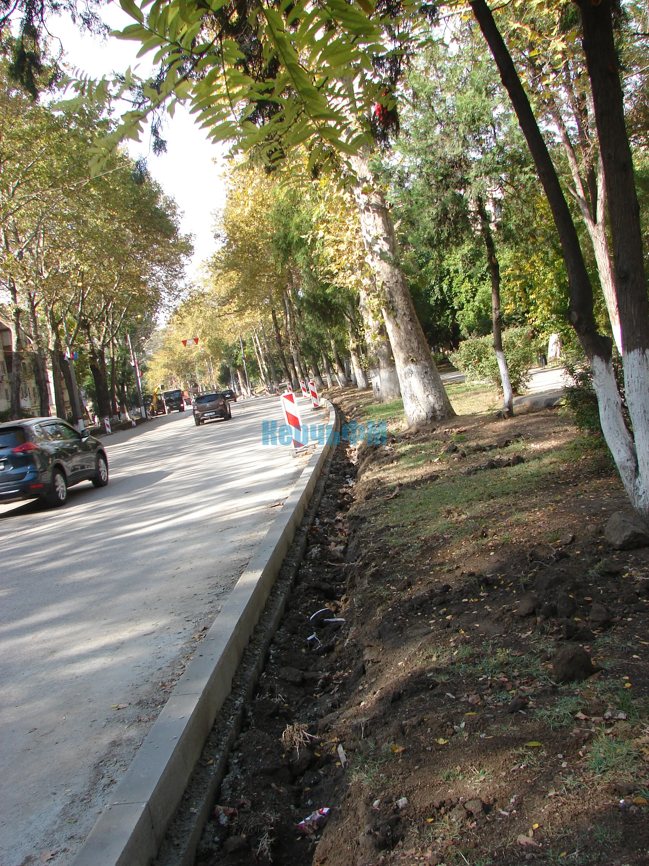 Часть бордюров уже установили вдоль правой полосы движения к центру.