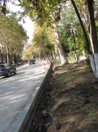Старые бордюры демонтируют и сразу начинают готовить траншеи к укладке новых.