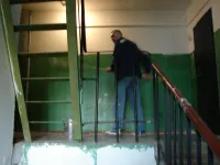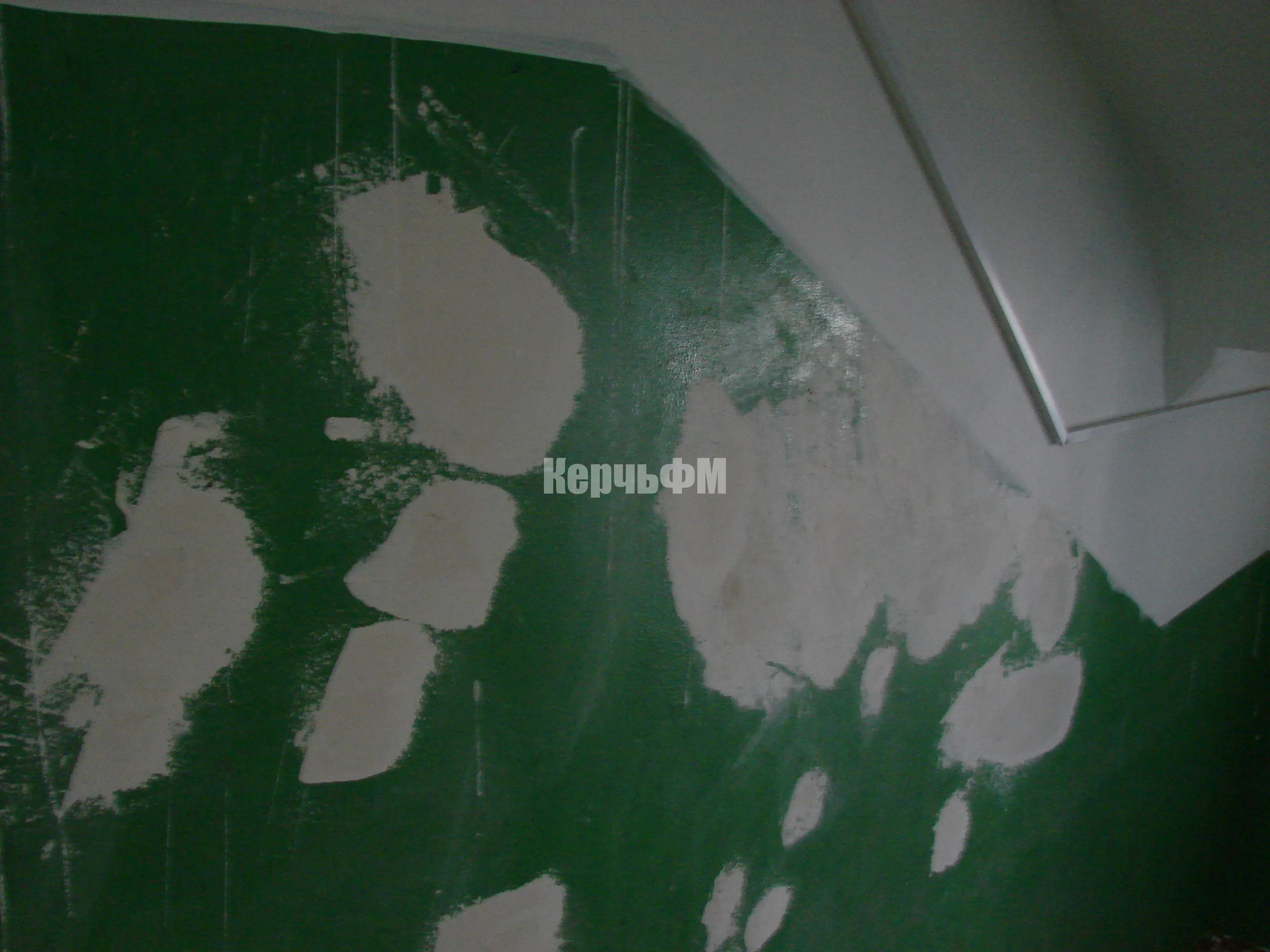 Мастер рассказал КерчьФМ, что недавно был завершен ремонт одного из очередных подъездов в доме по Генерала Петрова, 20. Теперь он ведет шпаклевку и побелку верхней части стен и самих потолков в четвертом подъезде.
