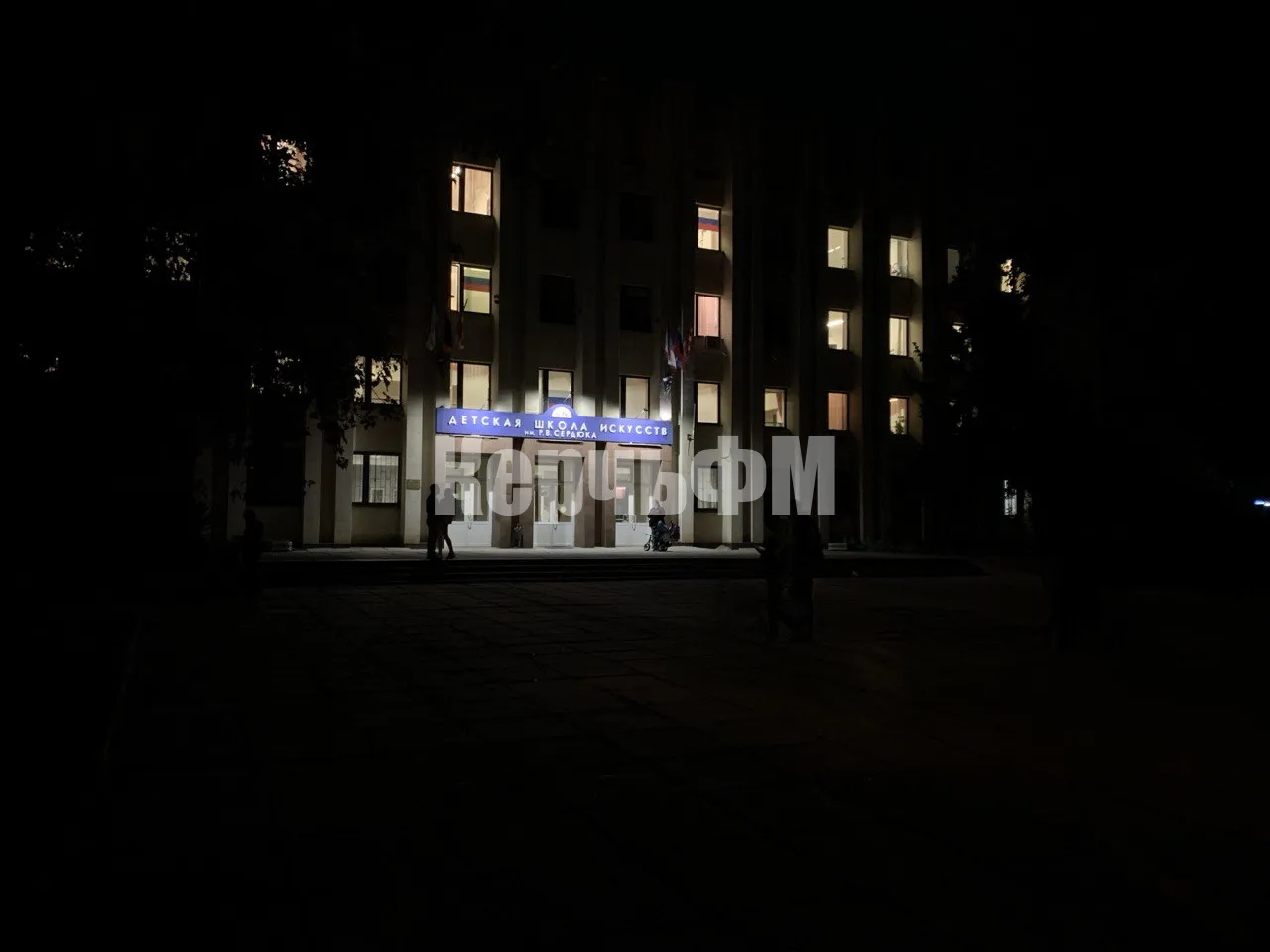 Воспитанники выходят из здания. Ни один фонарь уличного освещения возле него не горит, передает КерчьФМ.