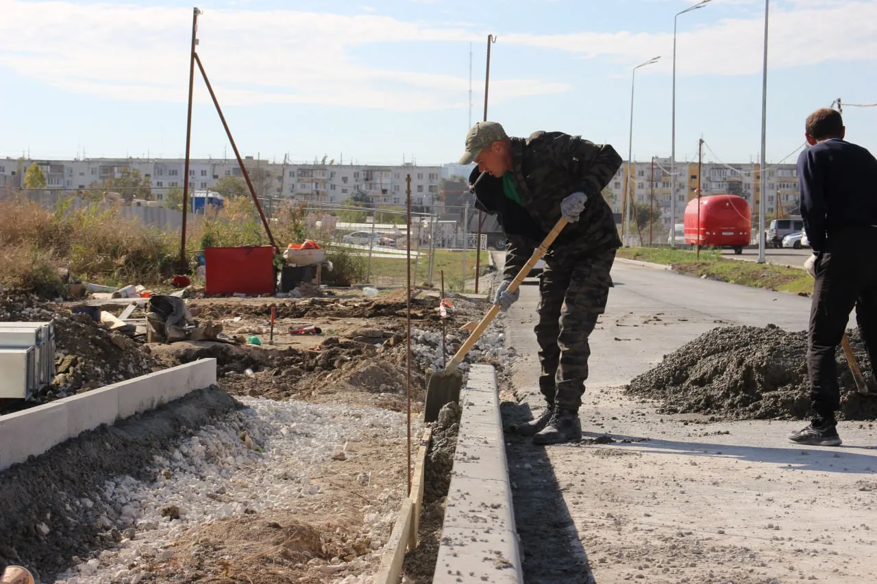 На дороге от ул. Марата к спортивному комплексу уложен первый слой асфальта, сейчас дорожная служба занимается обустройством тротуаров и бордюров. После завершения этих этапов будет уложен финишный, второй слой покрытия.
