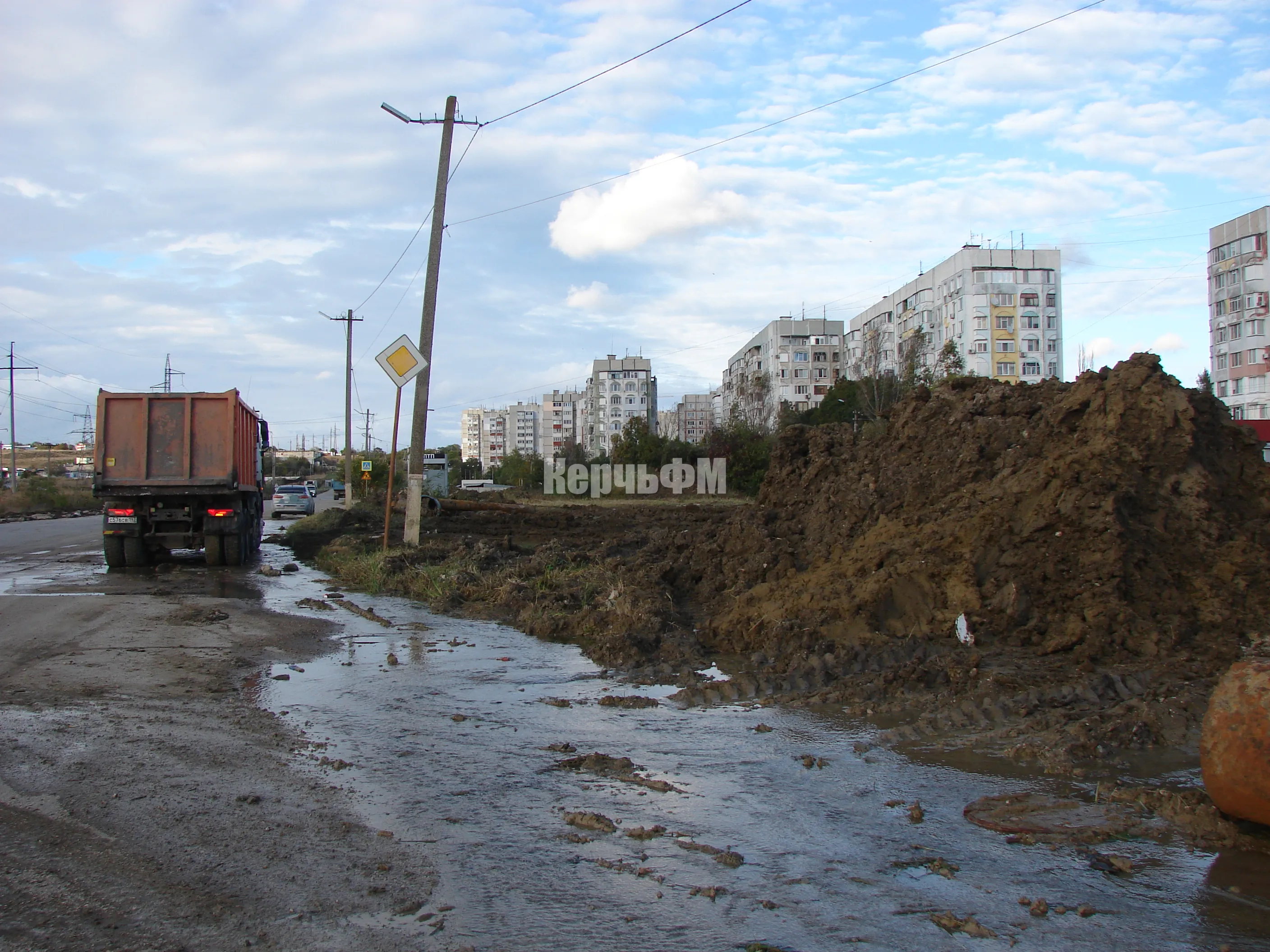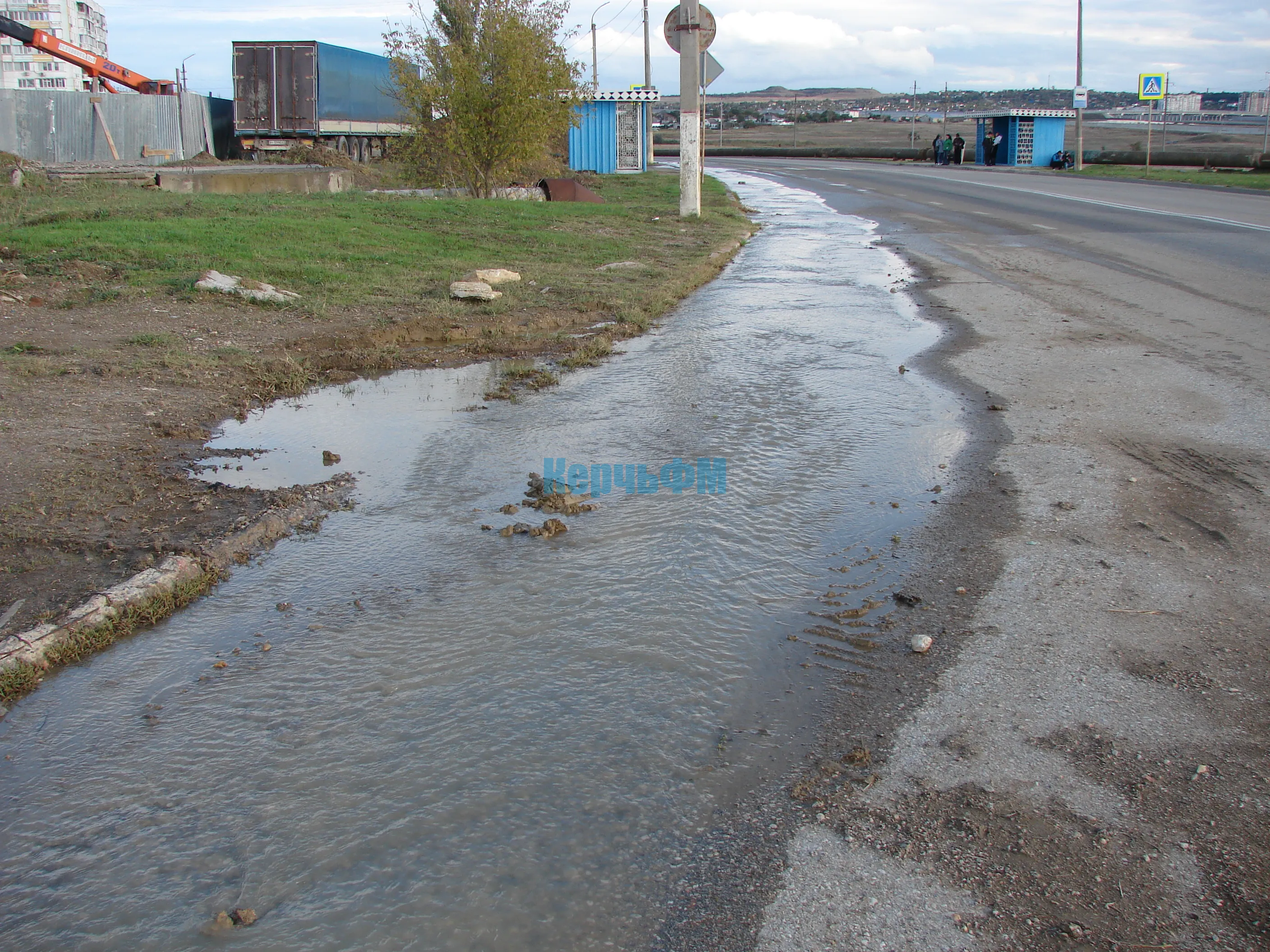 Озеро ликвидировали, а вода теперь бежит по обочине дороги по направлению к остановке "Марат-4", передает КерчьФМ.