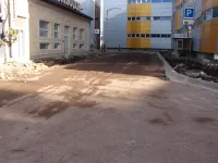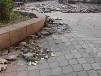 В настоящее время ведется демонтаж тротуарной плитки у здания ВТИ, передает КерчьФМ.