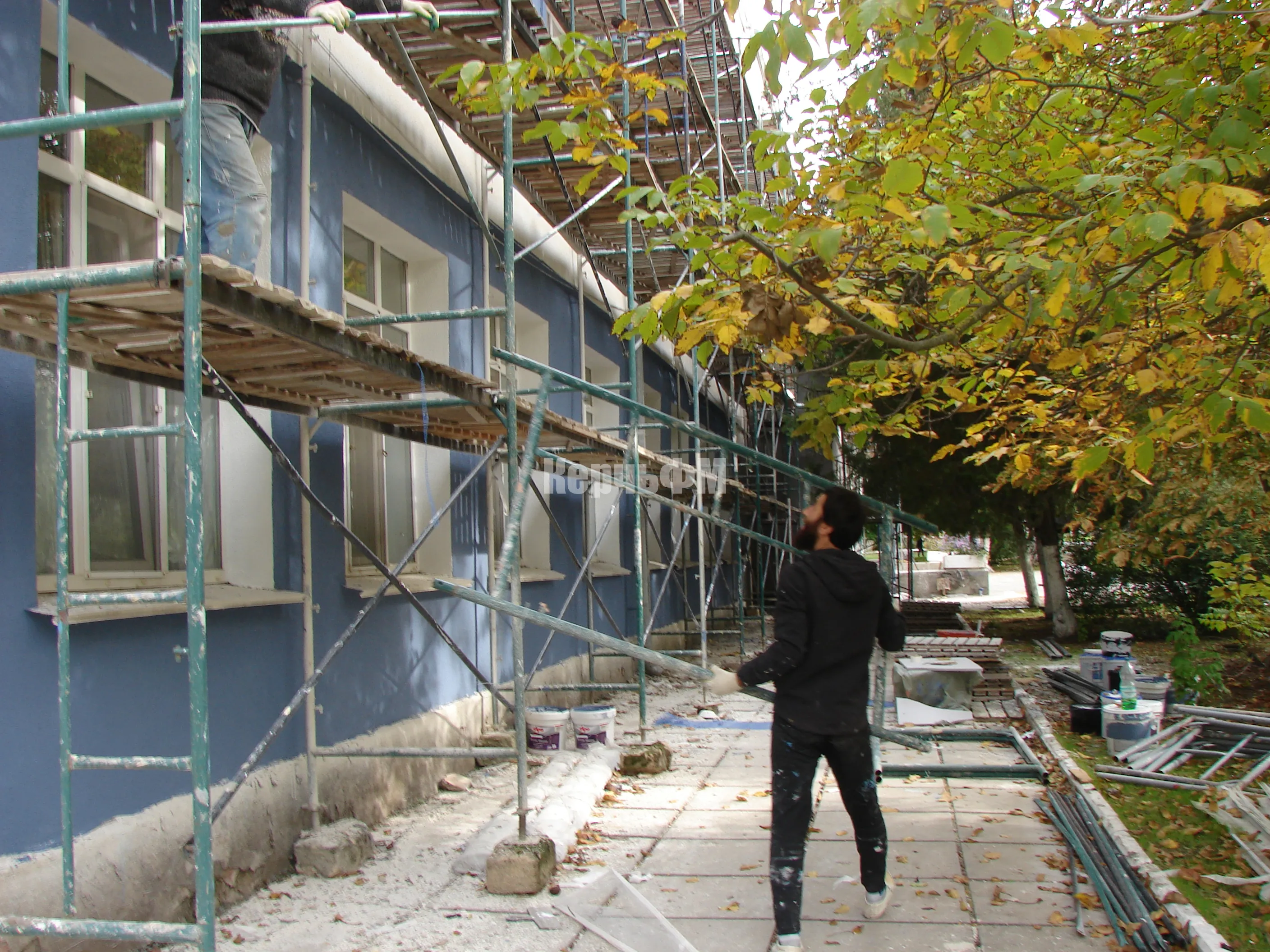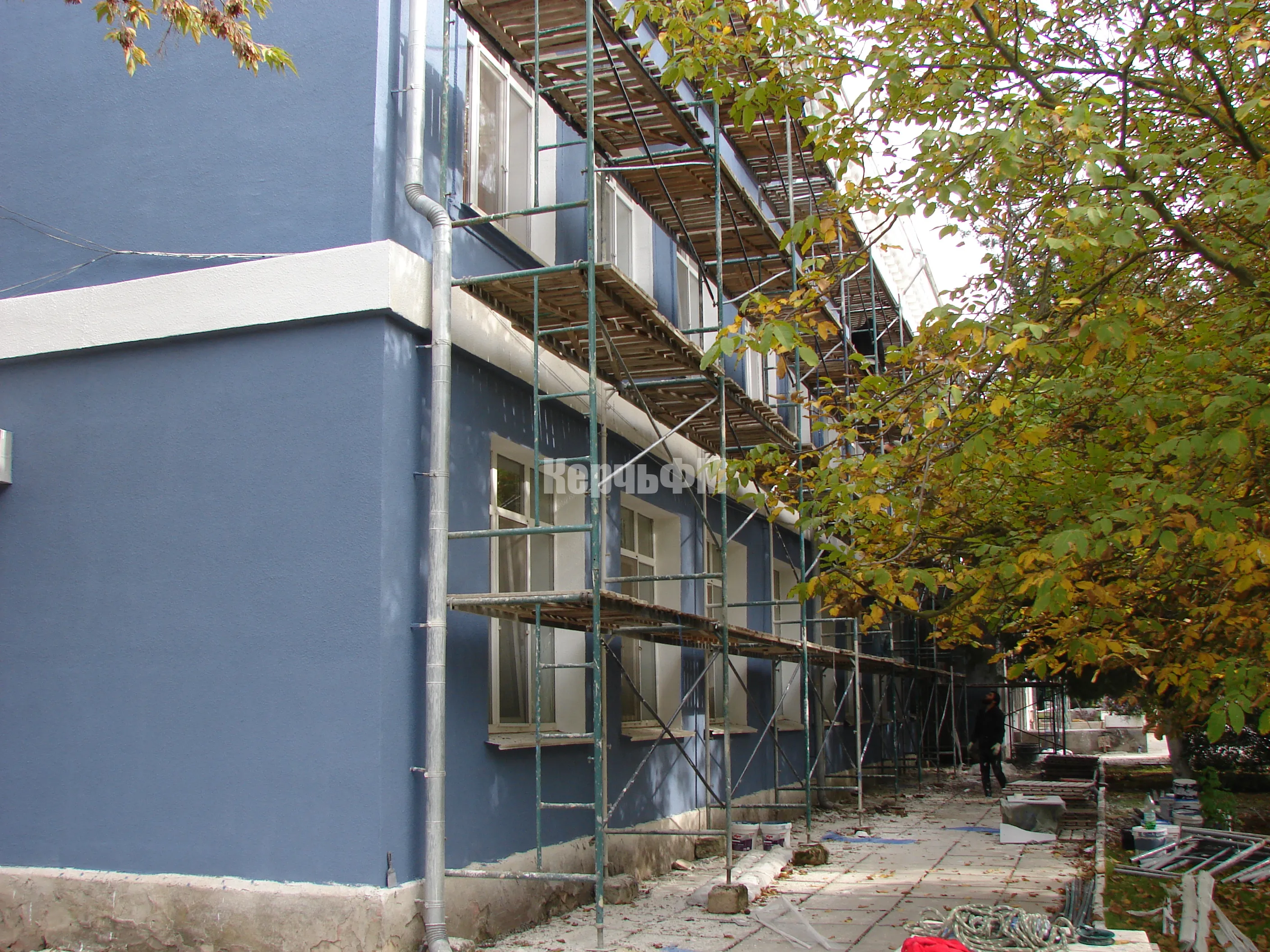 На школе № 17 в Керчи продолжают обновлять фасад