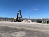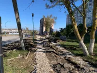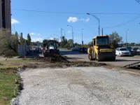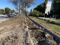 Вдоль дороги-дублера Шоссе Героев Сталинграда обустраивают новый тротуар. С обеих сторон будущей пешеходной дорожки ведется установка бордюров.