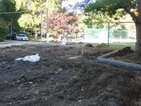 Затем будет завезен щебень, площадку сделают вровень с поребриком тротуара.