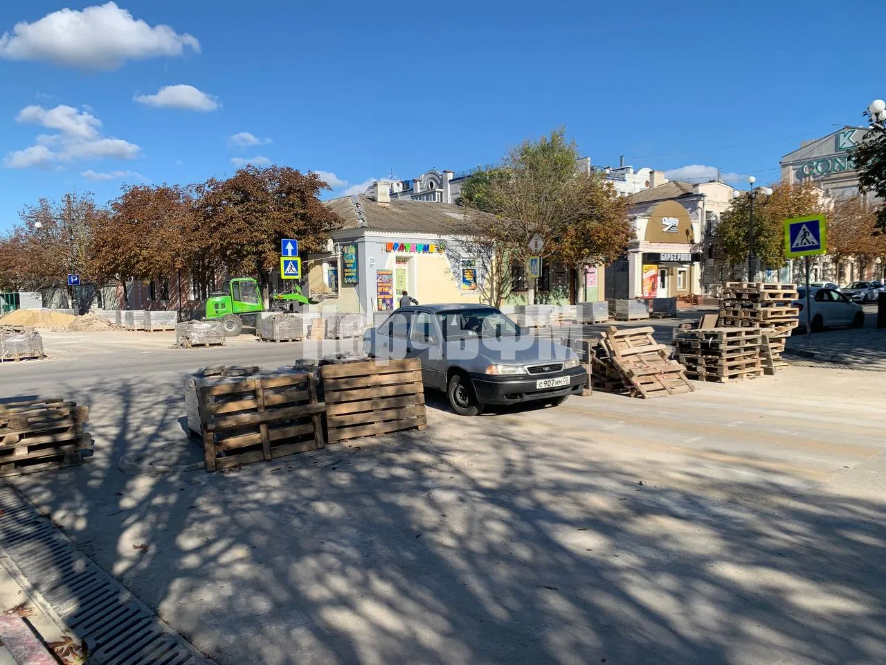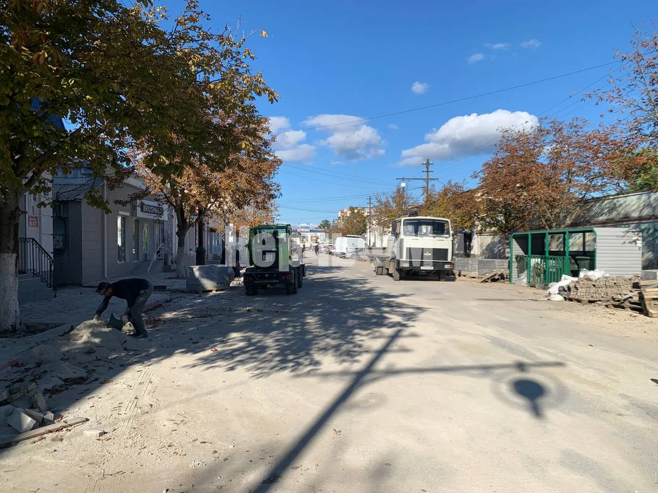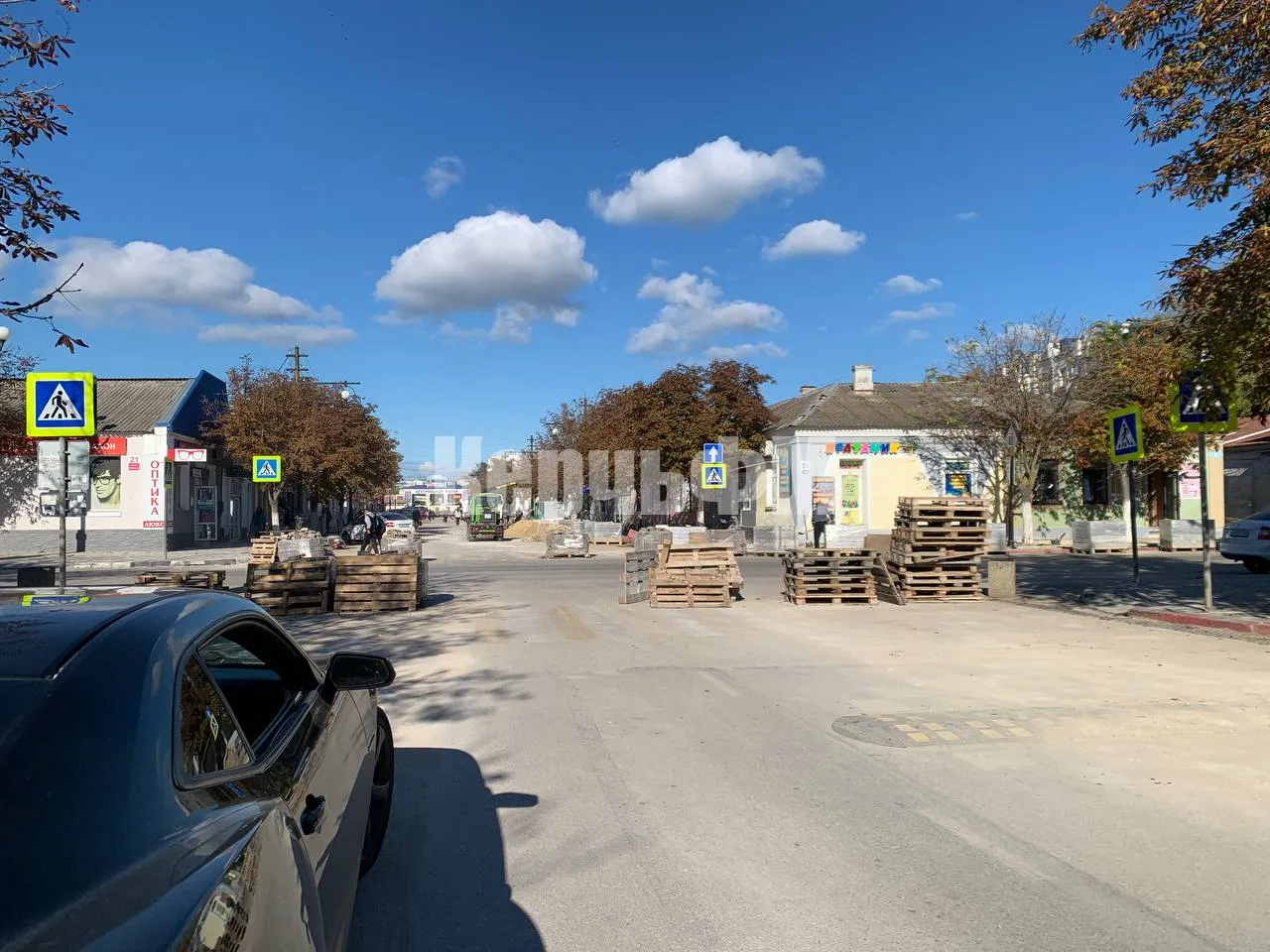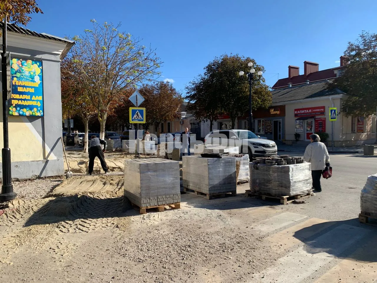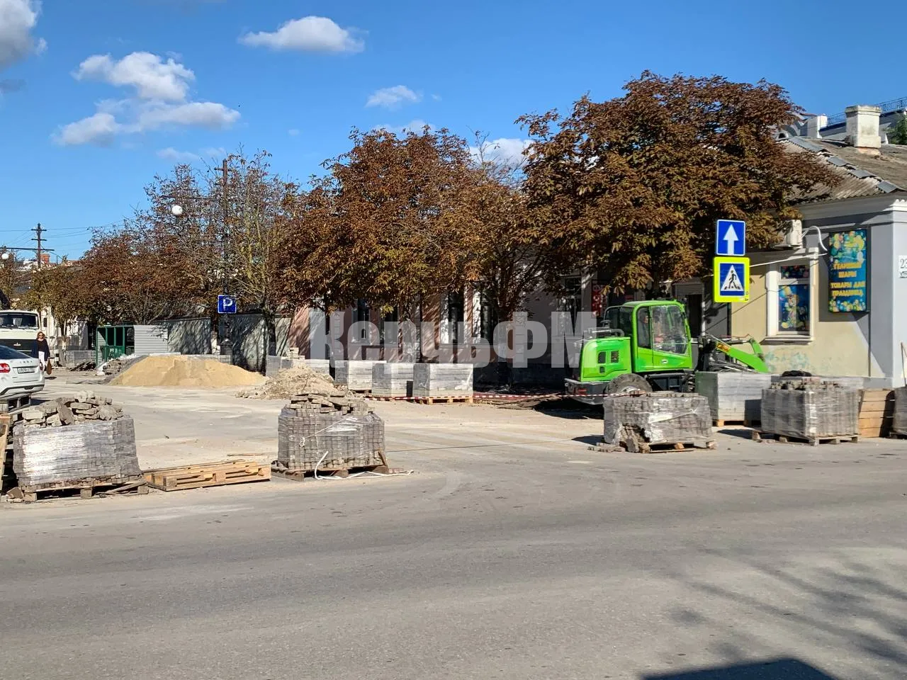 Тротуарная плитка здесь полностью демонтирована. Новая плитка завезена на объект и ждет укладки, передает КерчьФМ.