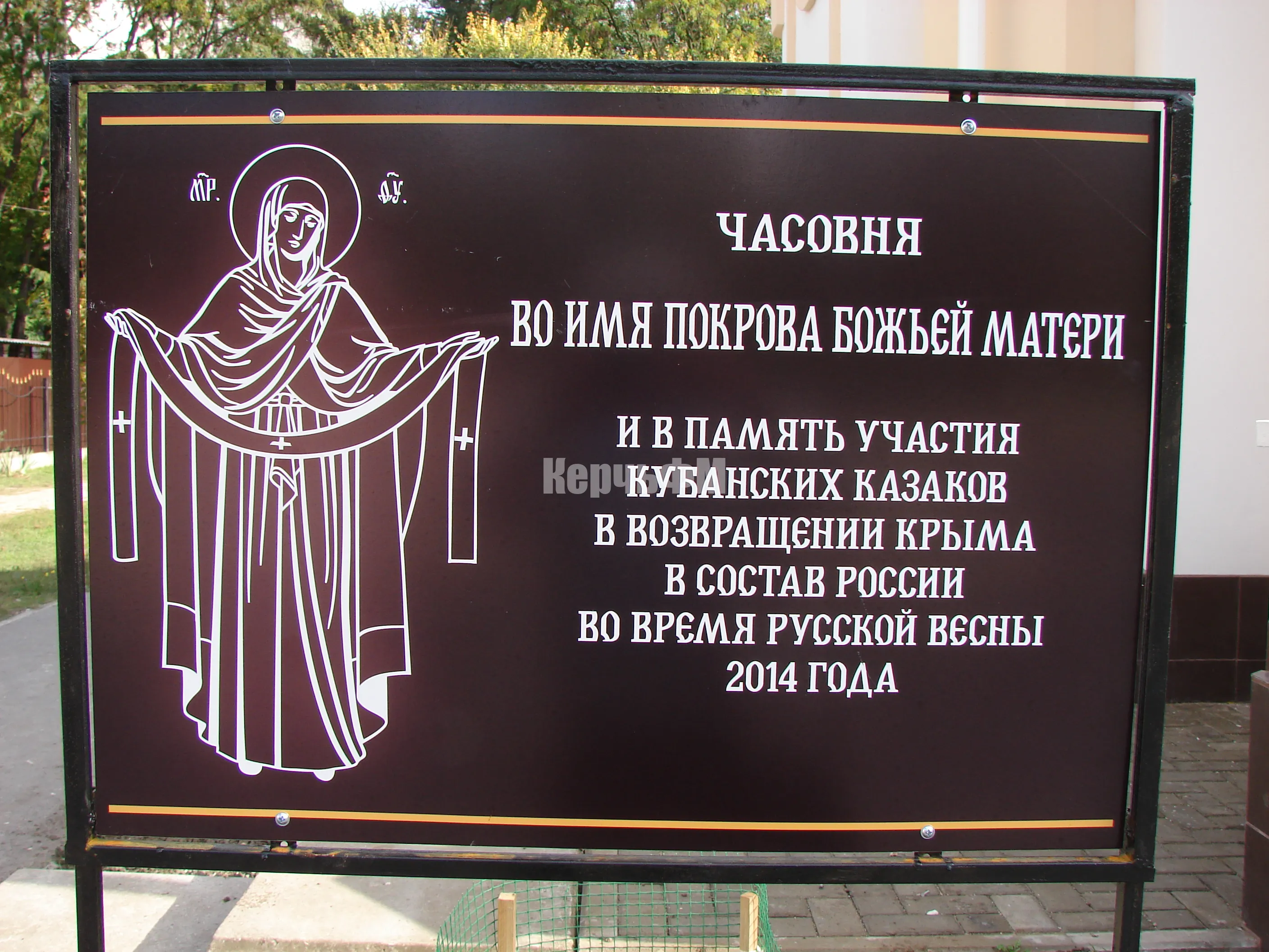 У входа установили табличку с названием часовни и указанием тех, кому она посвящена.
