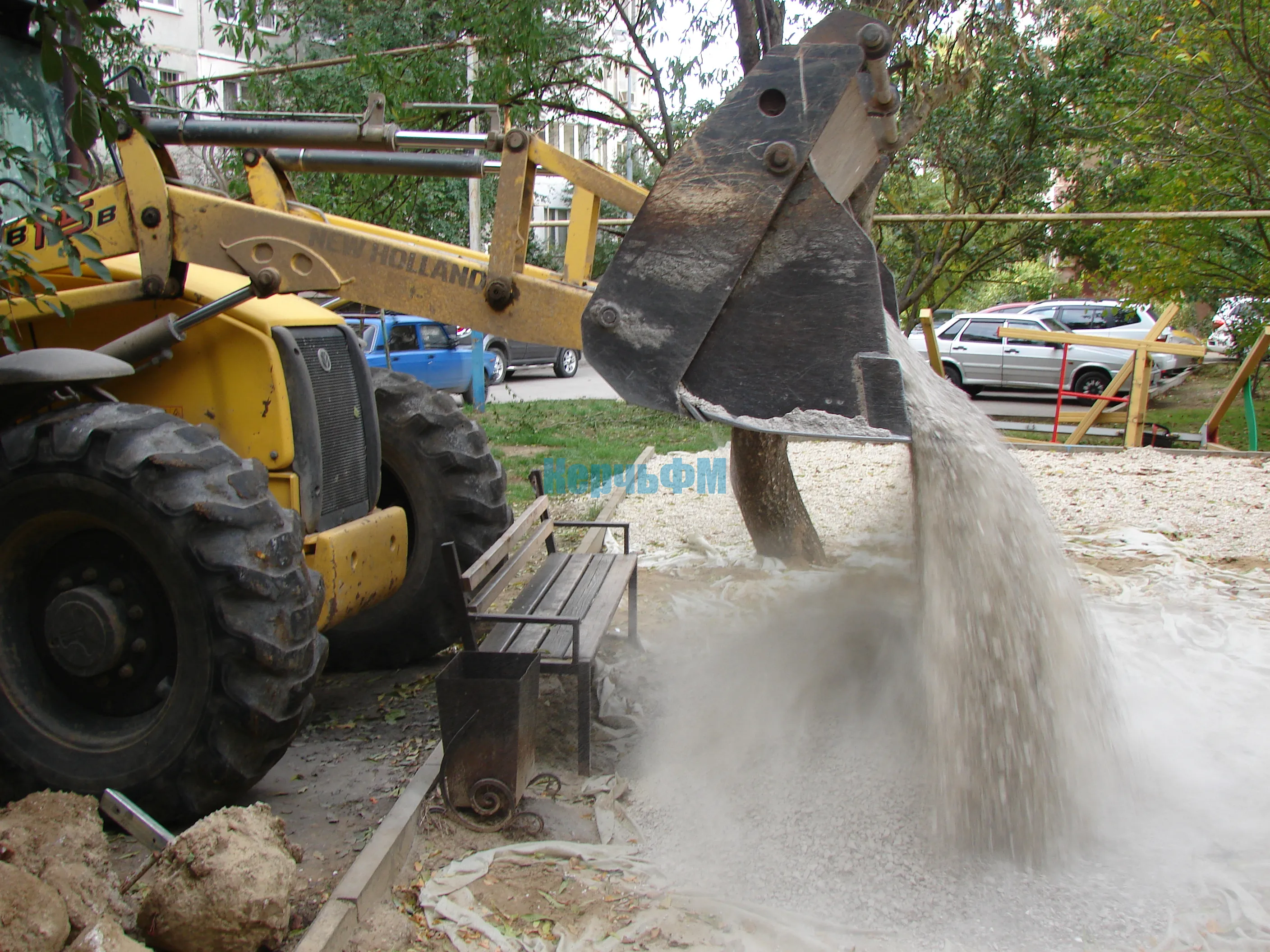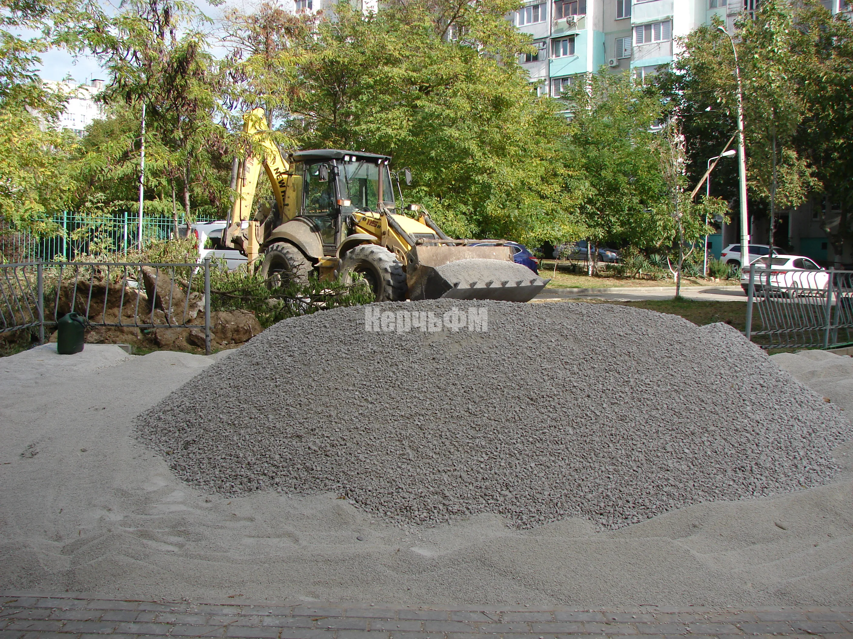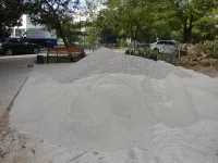 Тяжелая техника завезла на площадку необходимый объем сыпучих материалов.