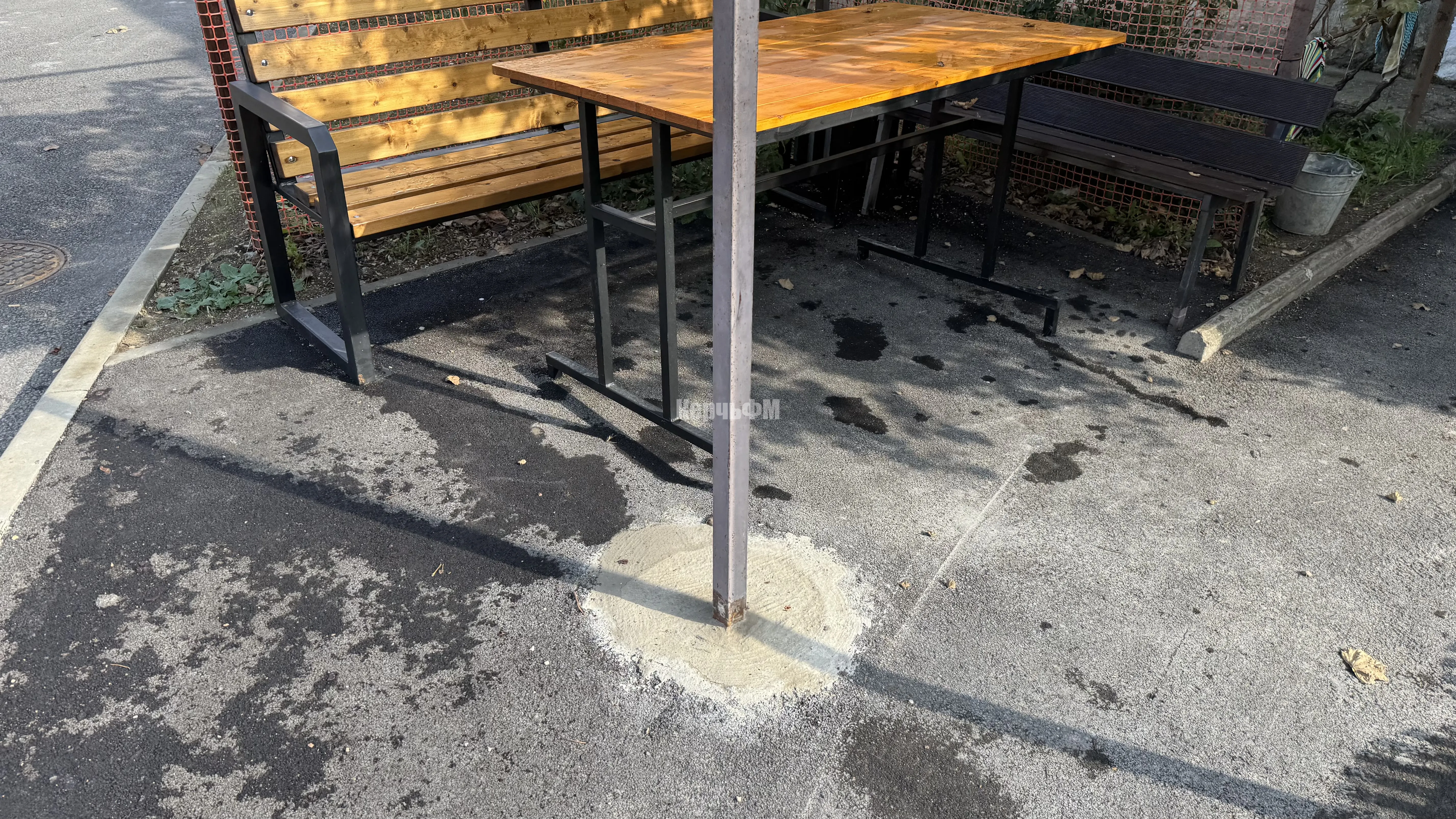 Нарекания вызывает и бельевая площадка: основания столбов залили цементом, который заметно отличается по цвету от асфальта и портит общий вид территории.