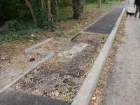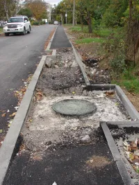 Тротуары были также отремонтированы, но не полностью. В местах, где есть люки, строители оставили прогалы.