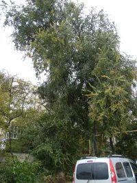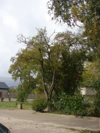 Растущие здесь высокие деревья и их ветви могут обрушиться на дорогу у дома по Всесоюзной, 3/3 и тротуар у библиотеки во время сильных ветров в любой момент.