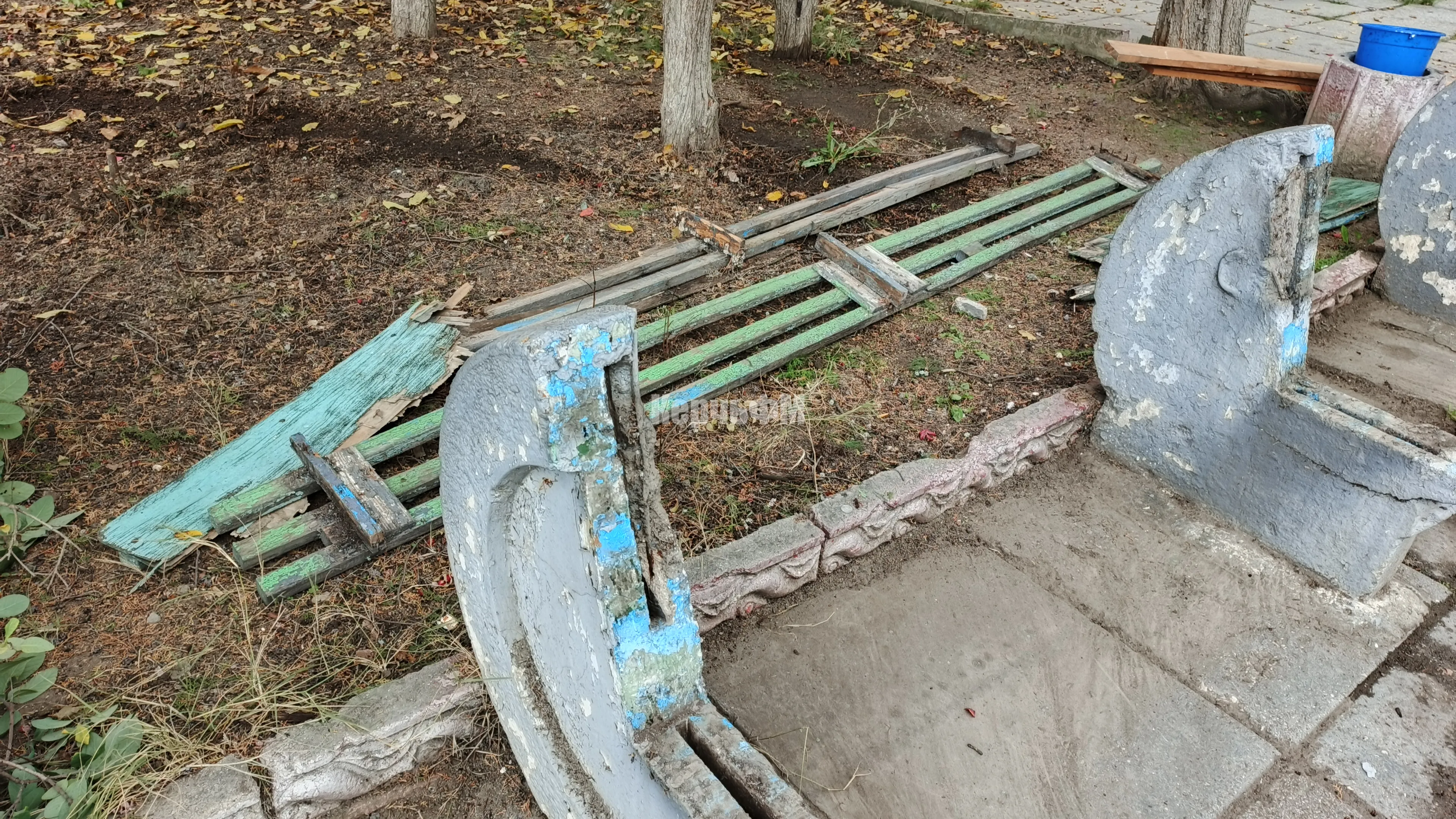 В минувшую пятницу у керченской поликлиники №2 начали демонтировать две старые и поломанные лавочки.
