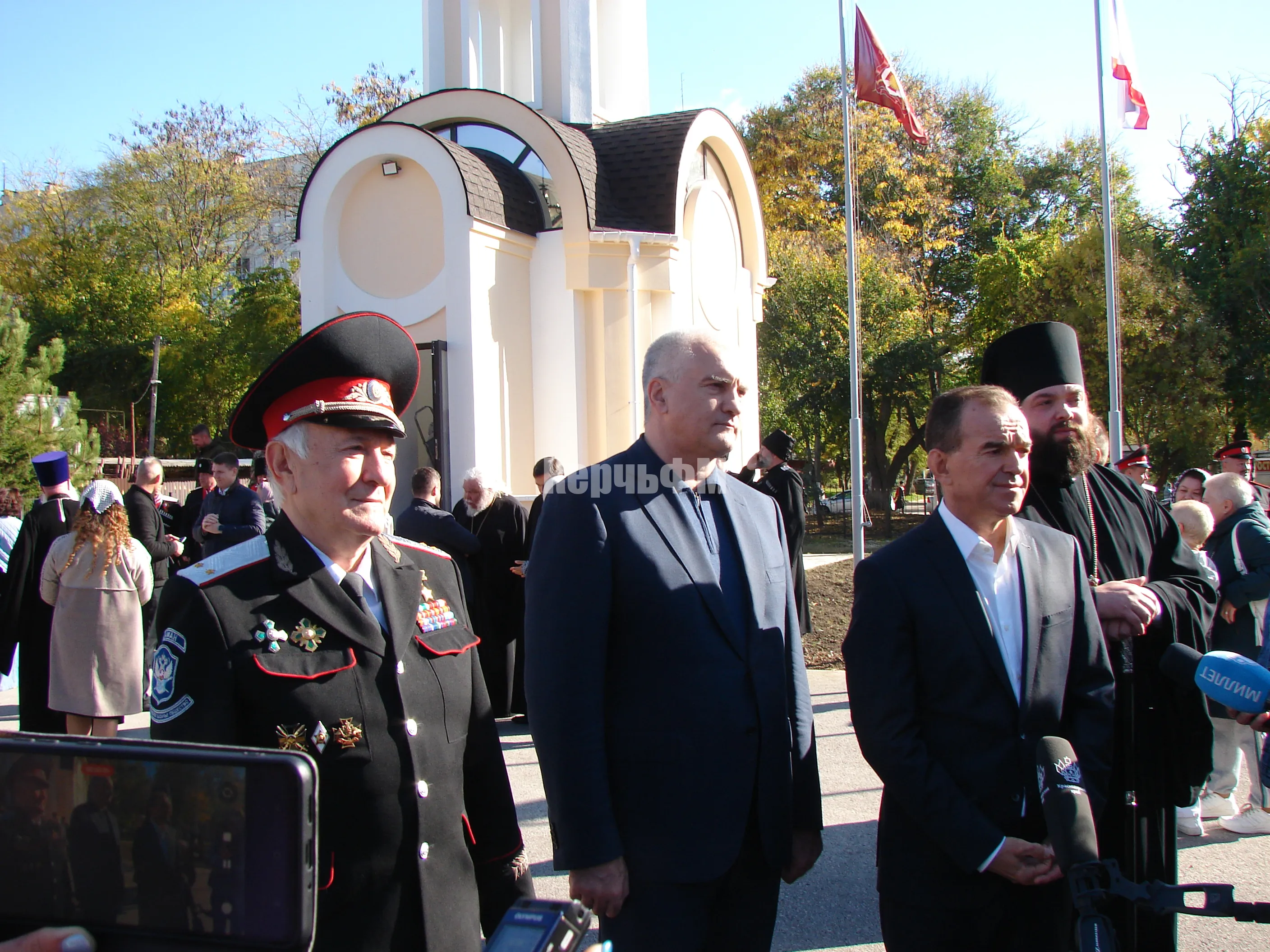 Часовня возведена при храме святого апостола Андрея Первозванного, протоиерей которой Николай Зиньков первым принял казаков и предоставил им пристанище под сводами храма, передает КерчьФМ.