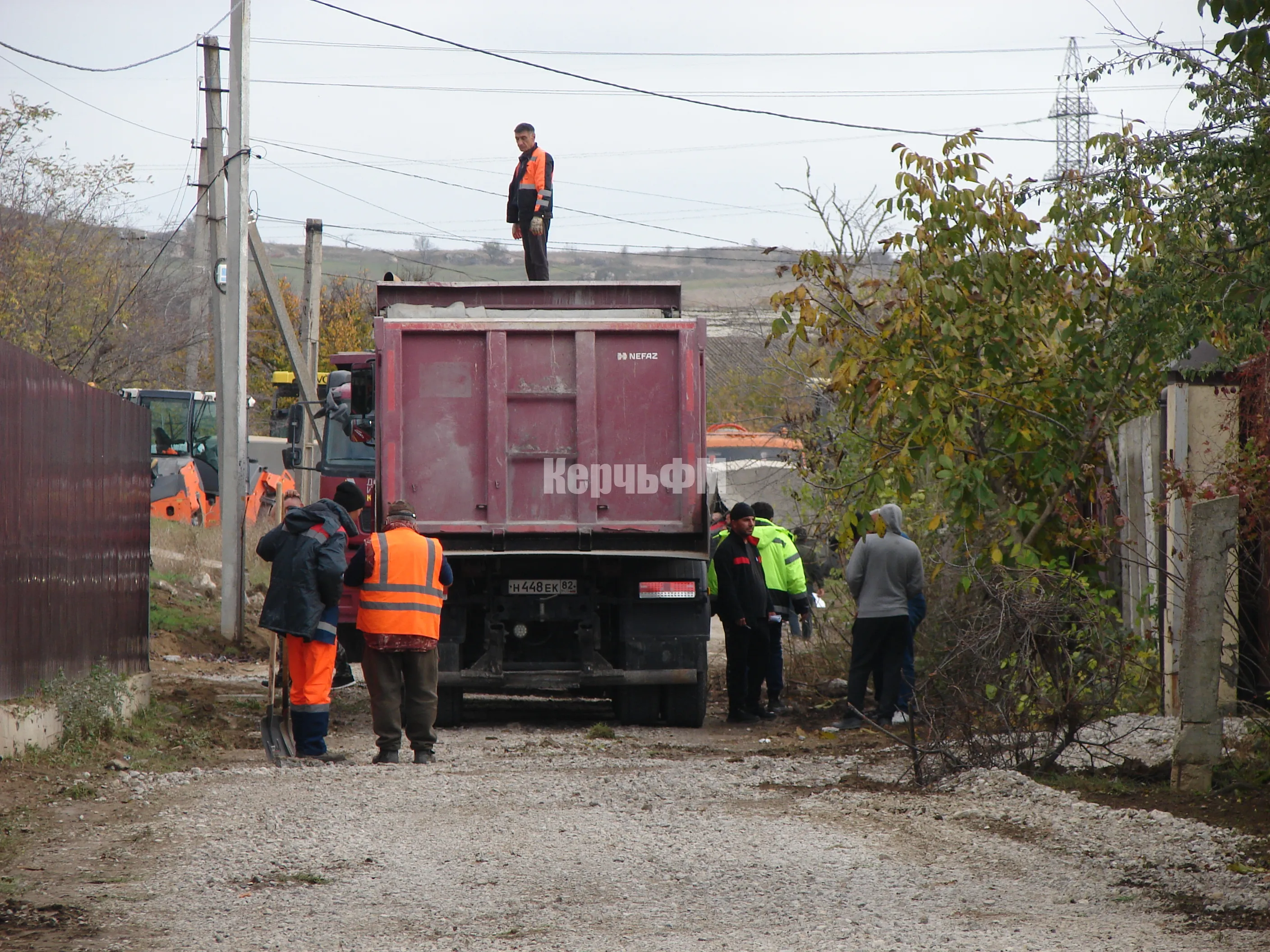 Сегодня тяжелая техника предприятия "Доринвест-Крым" сосредоточена у пересечения улицы Сергея Лазо с улицей Капитана Алиева.