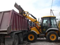 Ведется расчистка обочин грунтовой дороги.